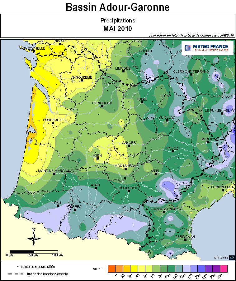 | UN EXEMPLE REPRESENTATIF, LA CARTE DE PLUVIOMETRIE DE MAI 2010 | ||